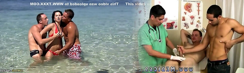 Deviant light haired Czech nurse Claudia Macc works on four stiff dicks