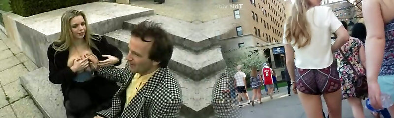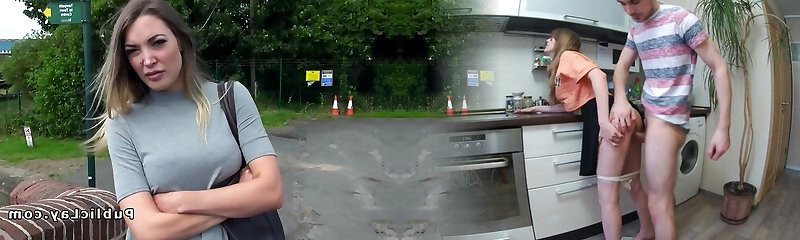 Flick of naughty dude flashing his cock to horny Pippa Platinum-blonde