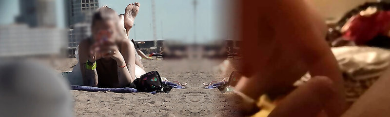 Outdoor performance with bikini damsels kissing and fingering beach sex