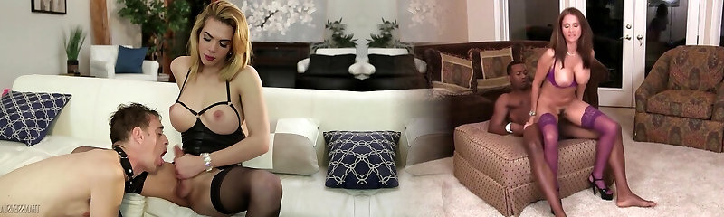 Nasty shemale blonde Jenna Tales penetrates a guy's butt