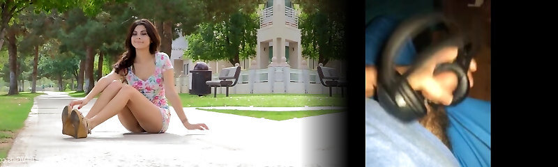 Cutie in a miniskirt showcases her panties and pussy outdoors