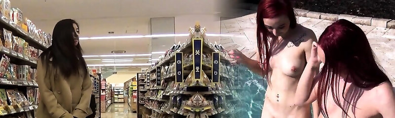 Lovely Brunette Exhibitionist Flashing At The Bookstore