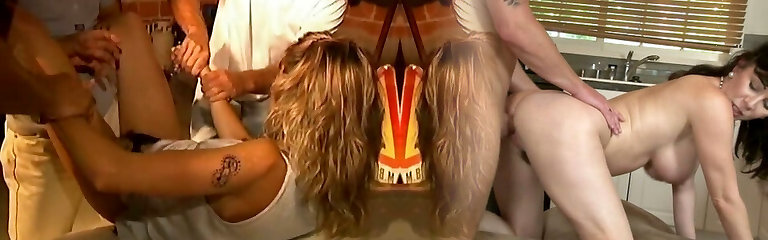 Fatty grannie screwed bad in her hairy clam in gangbang session