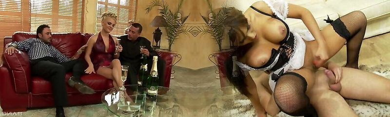 Latina bombshell and a blonde beauty geting fucked by 2 guys