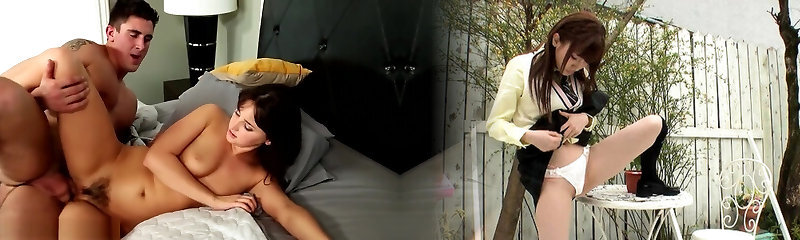 Slutty uniform and stocking make the tight black-haired fun to fuck