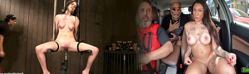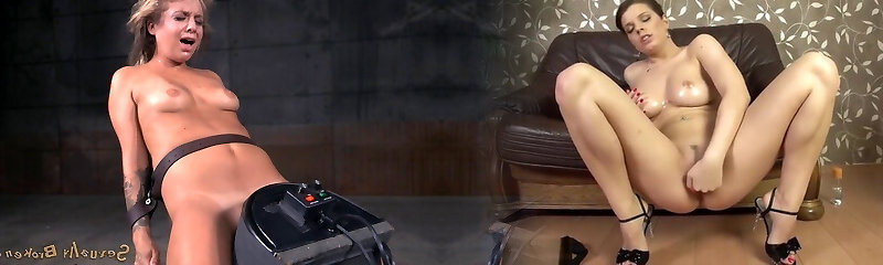 Busty Brunette Porked By Two Fucking Machines