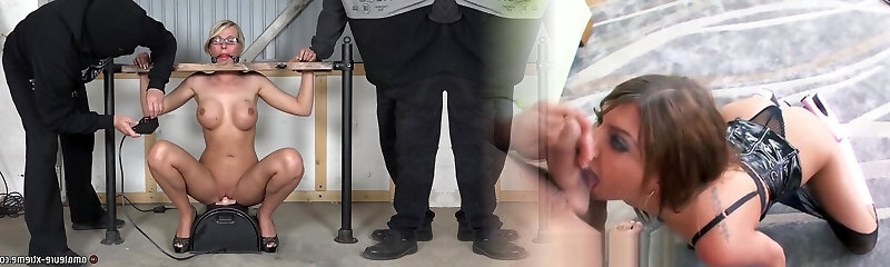 Curvy slave getting worked on roughly using hook-up machine