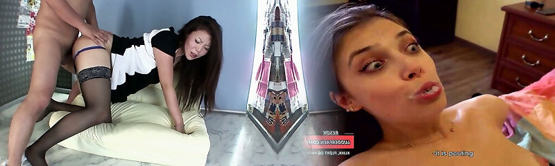 Svelte real Asian maid Natasha just displays ass and pokes doggy