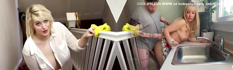 Hot buxom maid with big boobs gets plumbed in the kitchen by her client
