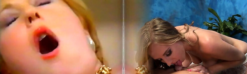 Sexy and big-chested blondie masturbates while watching another blondie in solo action
