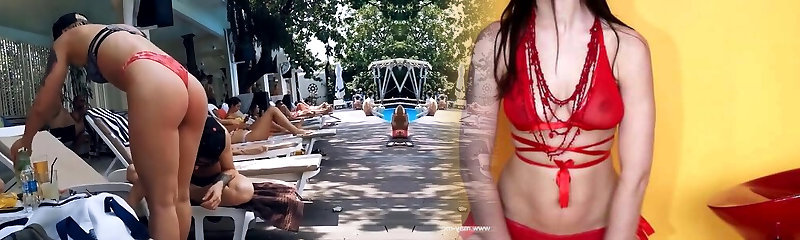 Hot Babe in a Thong and Bra-less in Public