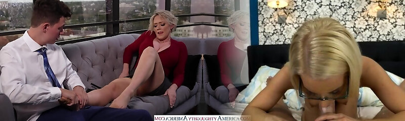 Light haired playful blond Phoenix Marie bows to suck delicious wood