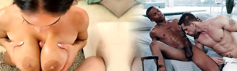 Ebony Milf with giant fake tits oiled and fucked by Bbc trainer