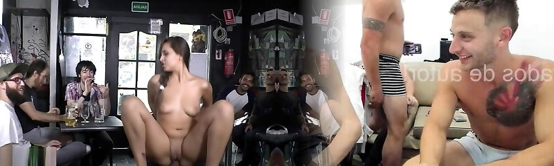 Brown-haired fucks and whips in public bar