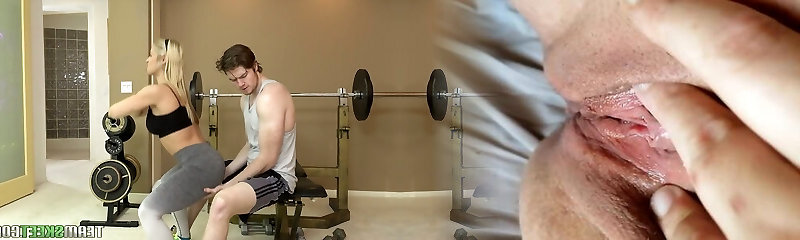 Slim and fit Sarah Vandella pulverizes her trainer in a gym