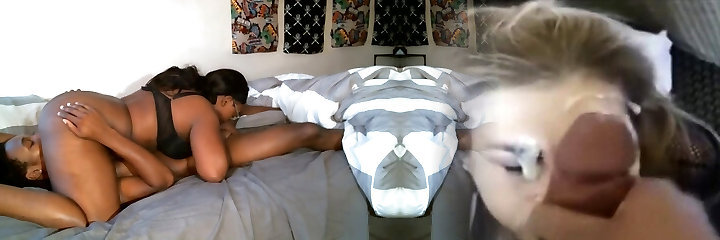 Skinny teen Coco gets her pussy eaten by curvy dark-hued stepmom