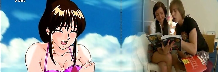 Bigboobs anime porn gets massage in the beach