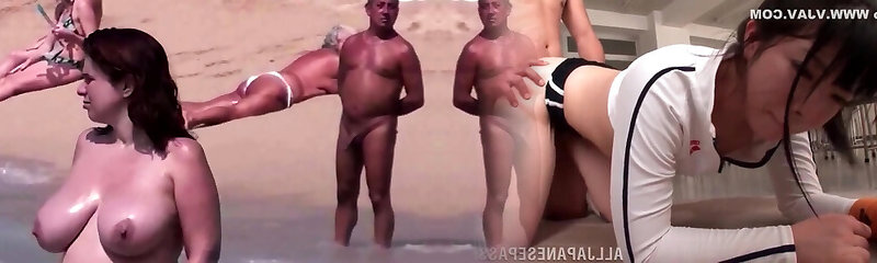 Busty and mature mommas and ultra-kinky daddies in group sex on the beach