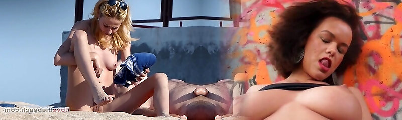 Hot beach handjob scene of torturing naked woman jerking husband.s penis
