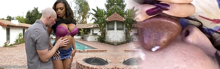 Ebony nextdoor babe Halle Hayes gives a blow-job and gets fucked by the poolside