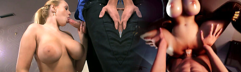 Busty blonde tramp Angel Wicky tit fucks hard dick and deepthroats it