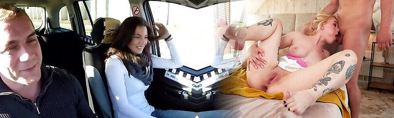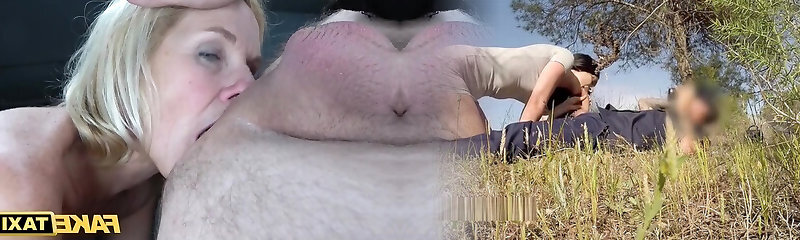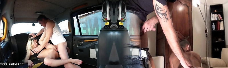 Shy passenger cheats on his Girlfriend with naughty blondie taxi driver