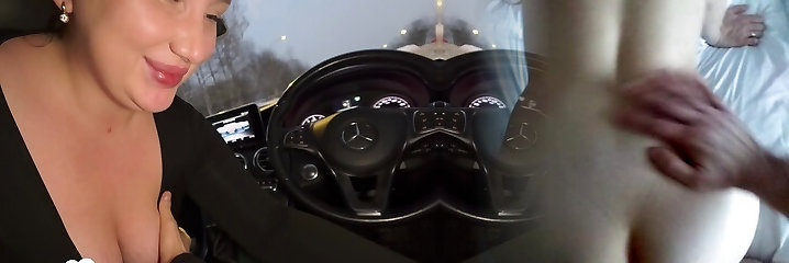 Natural busty Euro honey bangs in car in public