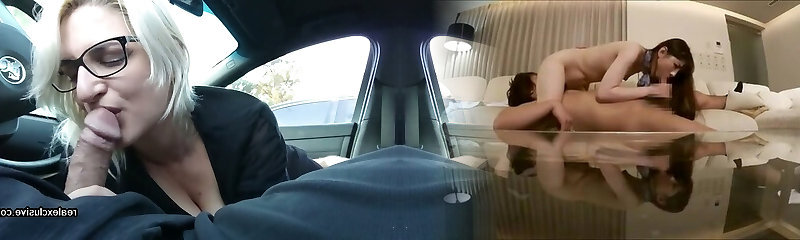 Stepmom Suck Off's stepson's manstick in car while dad watches.
