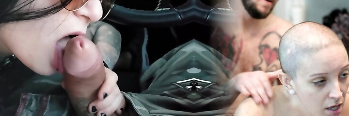 Inked up Mallory Maneater bj's cock in the car