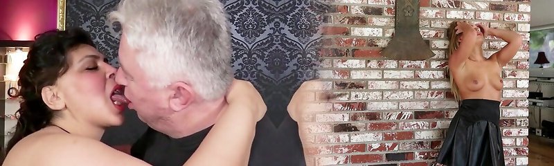 Filthy elderly man fingers wet pussy of a cutie and gets a blowjob
