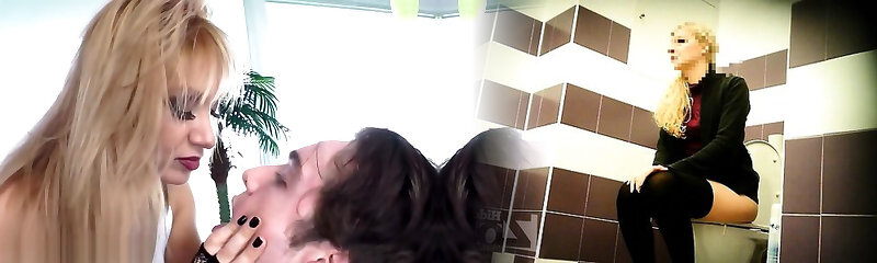 Slim blonde hottie makes her horny man eat her feet
