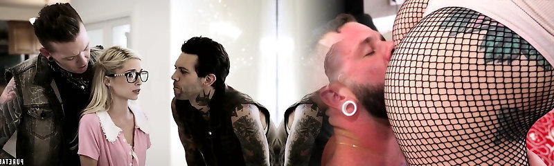 Trio horny dudes brutally polish hairy holes of just met blonde hooker