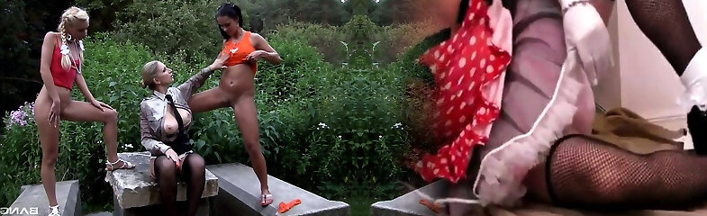 Trio mind-blowing girls having a lesbian party in the wilderness