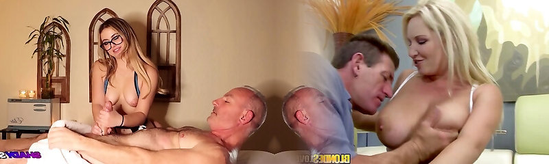 An older guy gets sensual gentle and erotic massage from a hot young blonde masseur