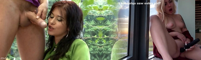 Wonderful busty brunettes sharing a long pulsating schlong