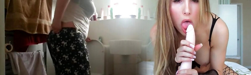 Killer amateur blonde Russian web cam girl sucking on her fucktoy
