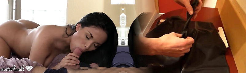 Sexy wife Christiana Cinn kisses her hubby and gives him amazing ride