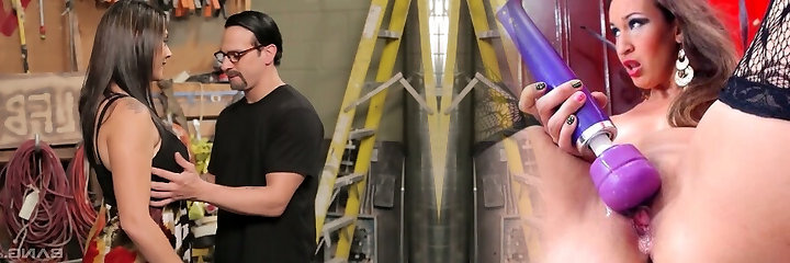 A bit plump gorgeous nympho with big tits teases carpenter to be fucked in his studio