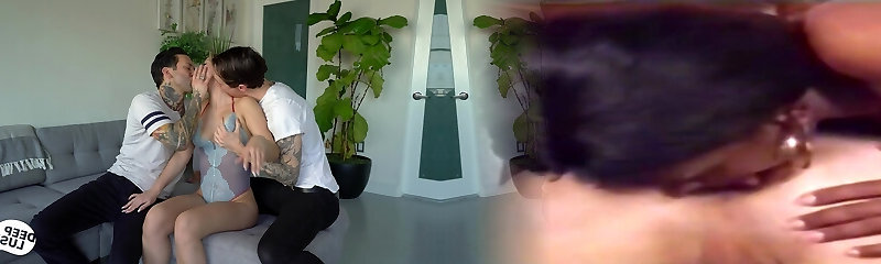 Sexy busty wild slut Alina Lopez works on two enormous cocks of tatted buddies