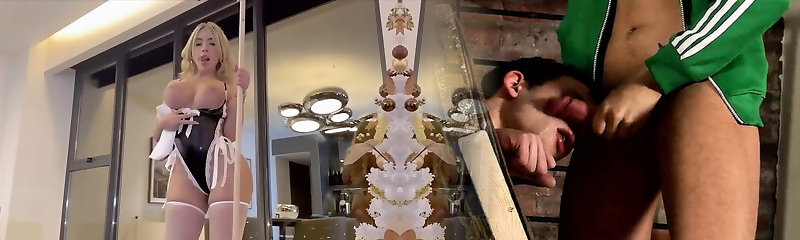 blonde skinny fetish teenager in latex fuck her slave