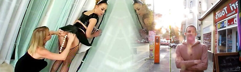 2 skanks play with anal beads & a dildo and share a trouser snake
