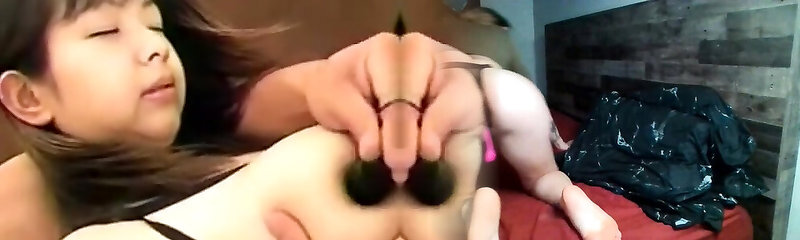 Fucked cute Asian Blonde in ebony lingerie on a bed