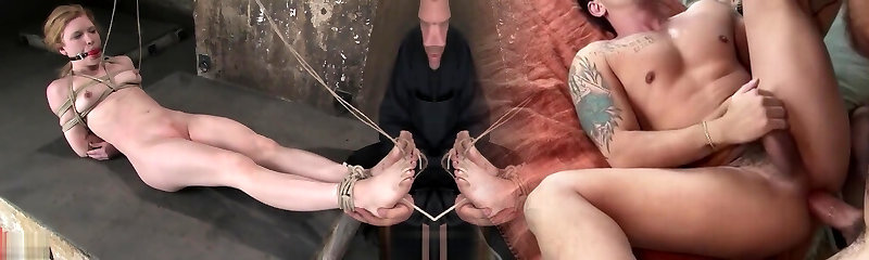 Pierced nipples sex bomb Scarlet Chase strapped up and smashed in the bum