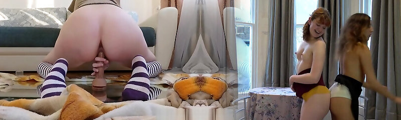 School girl ride big dildo with pierced nips