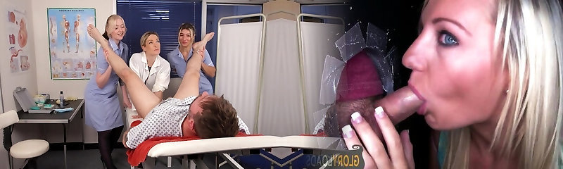 Naughty doctor Ella Jay and her nurses sensation a bare patient