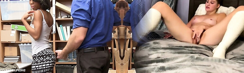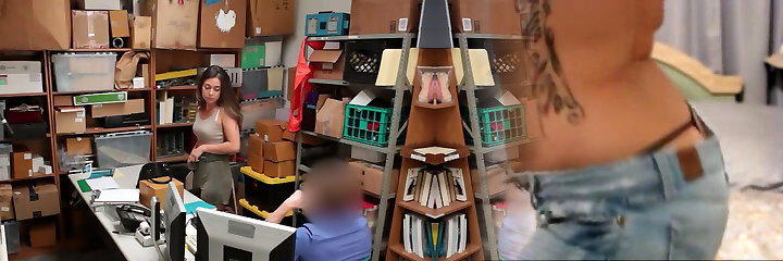 Shoplifter Octavia Red is punished by a mall security guard in his office