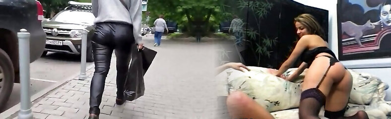 Sweet woman's backside in leather pants