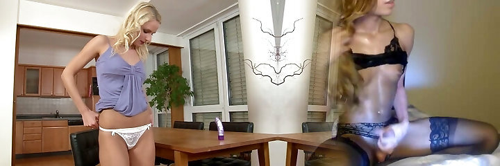 Cute blonde Misie enjoys toying her cunny in the kitchen