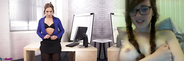 When this office damsel gets bored at work she loves to play with her dildo