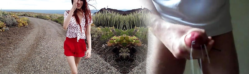 Girl pees in the forest then faps stranger's hard cock